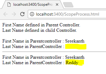 the child controller having the model named “$scope.lastName”. As per the